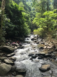 Fish food in hand, we fed large schools in the lower pools and then – like a group of Lara Croft wannabes – navigated up through shaded forest paths, across dubious bamboo bridges and over boulders, scuttling on ledges past 4 metre drops whilst gripping the ropes provided to reach ‘level 3’. Praying not to brush up against the fish, we slipped into the cold fresh pool and let the cascading water massage our backs. Bug was disappointed to not spot either gibbons or leopards. Us too (not).